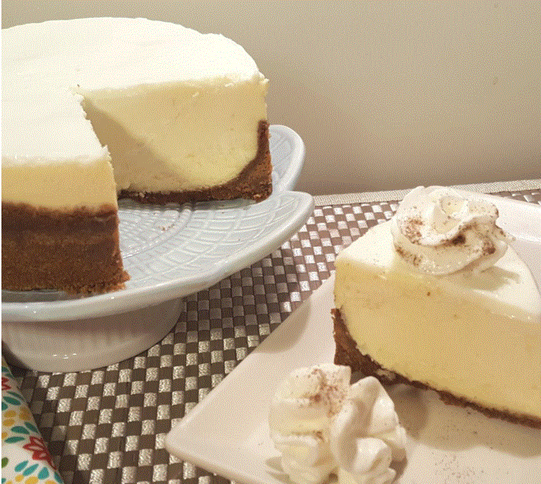 The center (no more than an inch) will be slightly jiggly (not wet, JIGGLY), but don't worry. The heat that is trapped inside will continue to cook the center while the cheesecake cools.