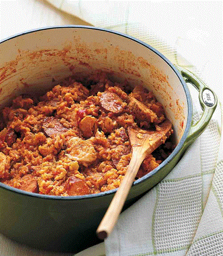 - ☐ 2 lbs andouille sausage, cut into 1/2-inch pieces
